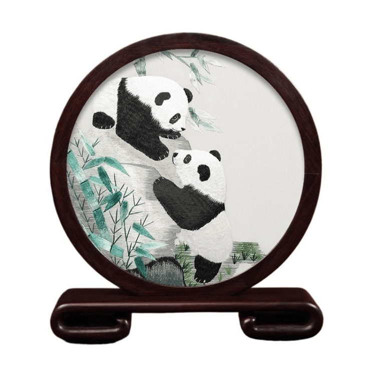 Su Embroidery Handmade Silk Silk Thread Embroidery Craft Ornament Climbing Panda 21.5 * 24 * 4.5cm
