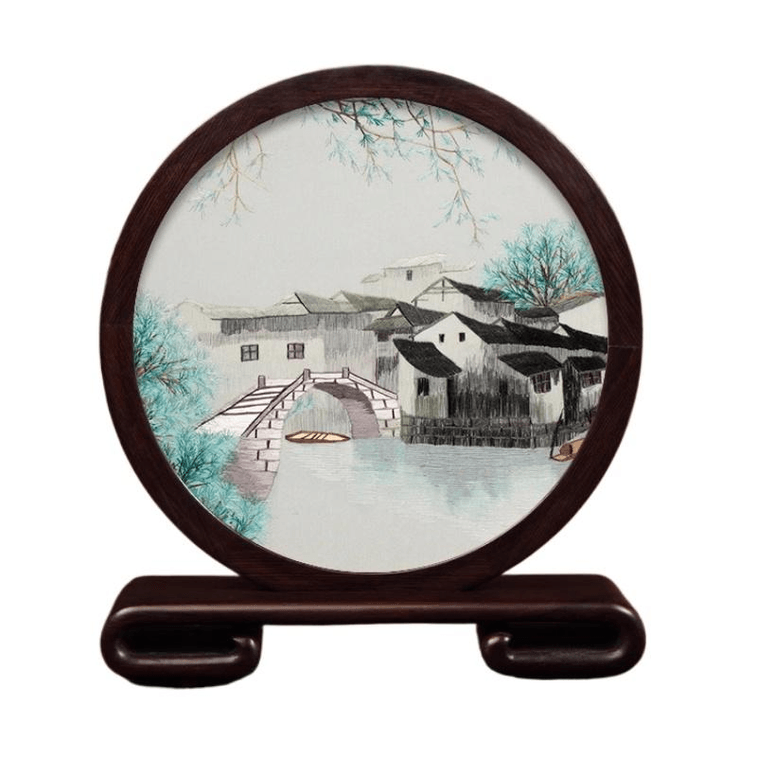 Su Embroidery Handmade Silk Silk Thread Embroidery Craft Ornament Elegant Jiangnan 21.5 * 24 * 4.5cm