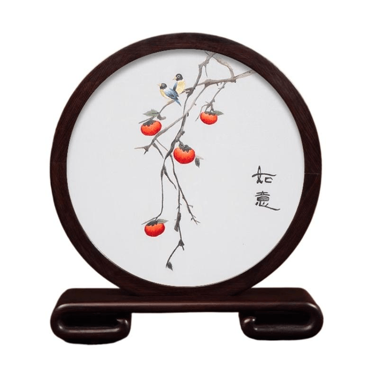 Su Embroidery Handmade Silk Silk Thread Embroidery Craft Ornament Four Persimmon Ruyi 21.5 * 24 * 4.5cm