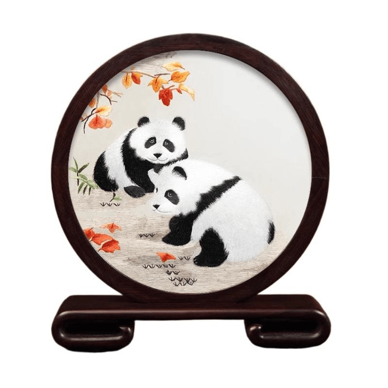 Su Embroidery Handmade Silk Silk Thread Embroidery Craft Ornament Maple Leaf Panda 21.5 * 24 * 4.5cm