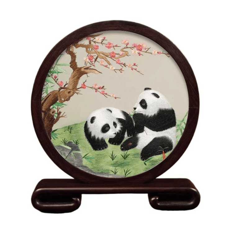 Su Embroidery Handmade Silk Silk Thread Embroidery Craft Ornament Plum Blossom Panda 21.5 * 24 * 4.5cm