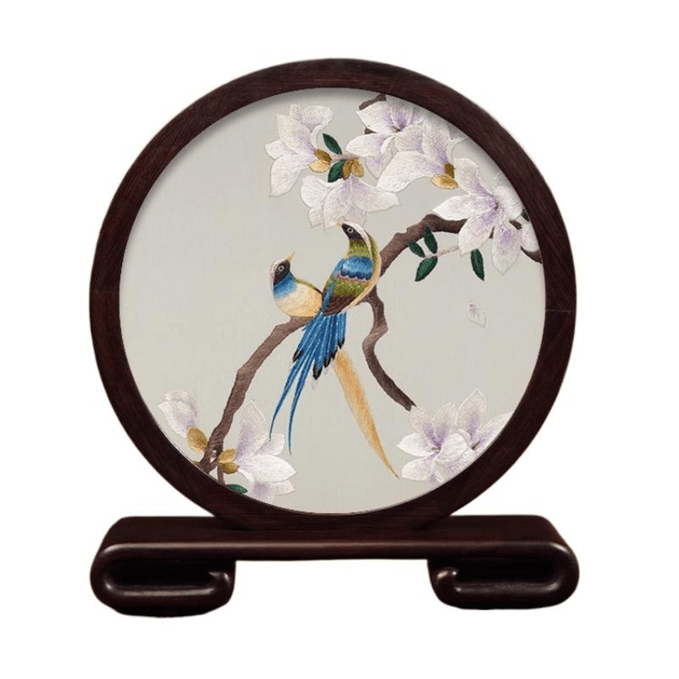 Su Embroidery Handmade Silk Silk Thread Embroidery Craft Ornament Purple Magnolia Bird 21.5 * 24 * 4.5cm