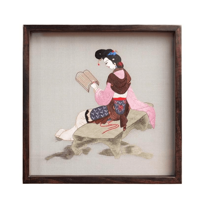 Su Embroidery Handmade Silk Silk Thread Embroidery Crafts Ornament Reading Maid 21 * 21 * 3.5cm