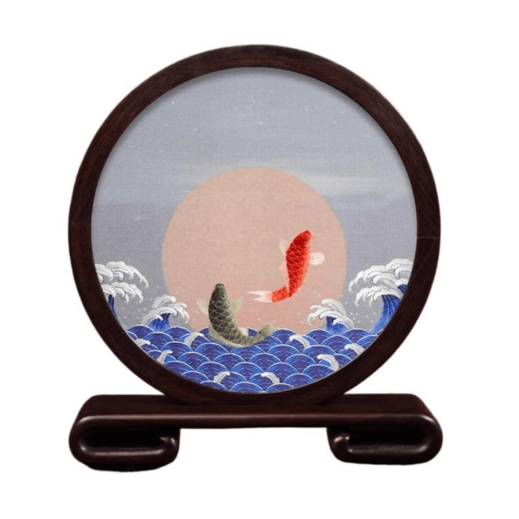 Su Embroidery, Real Silk, Silk Thread Embroidery Handicraft Ornament, Carp Leaping High, 21.5 * 24 * 4.5cm