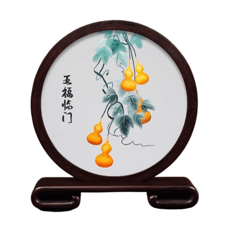 Su Embroidery, Real Silk, Silk Thread Embroidery Handicraft Ornament, Wu Fu Lin Men 21.5 * 24 * 4.5cm