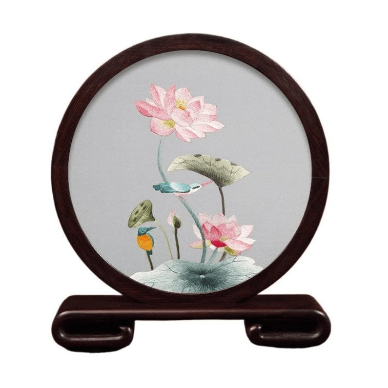 Su Embroidery, Silk, Silk, Silk Embroidery, Handicrafts, Ornaments, Emerald Bird, Lotus Flowers, 21.5 * 24 * 4.5cm