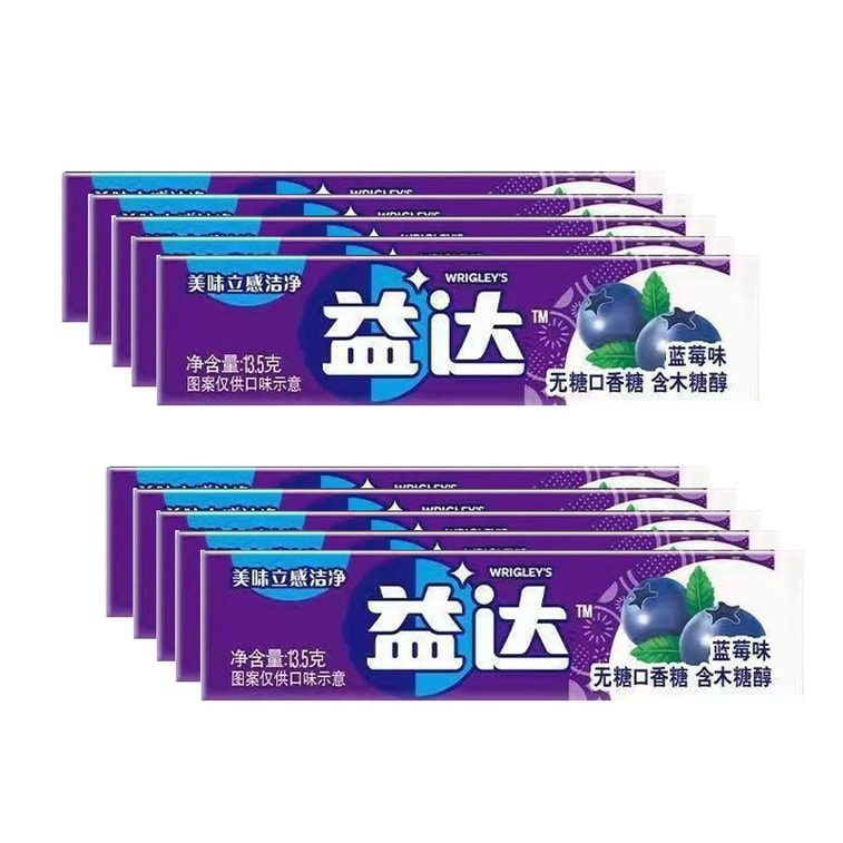 Sugarfree Blueberry Gum10-Pack | Extra Chewing Gum 13.5g/Box | Fresh Breath Energy Boost | Date Ready | Special Value