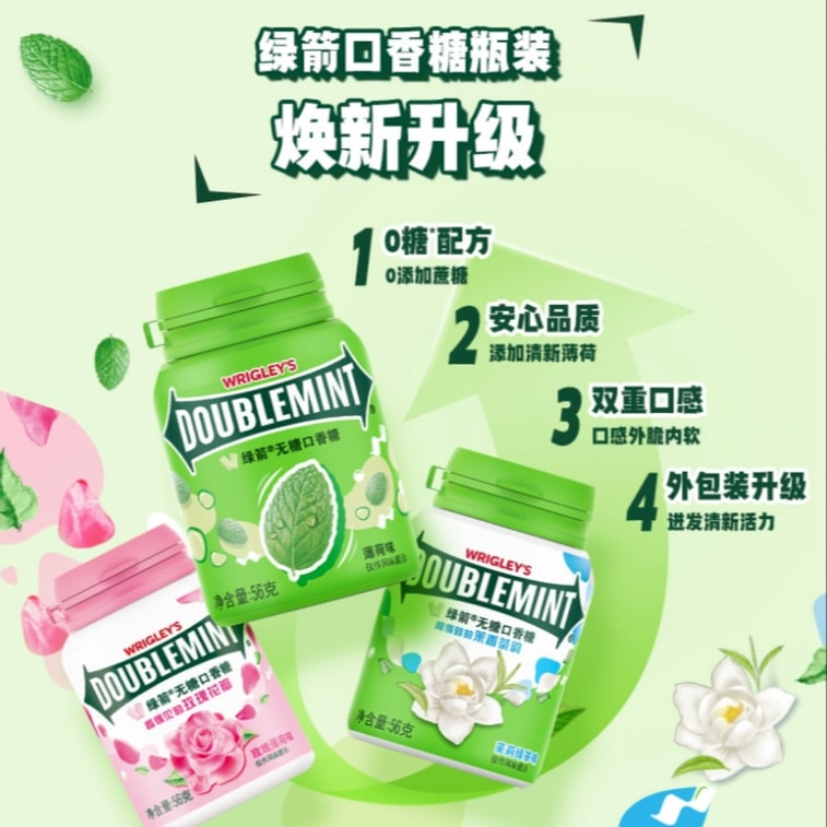 Sugar-free chewing gum Jasmine green tea flavor 56g Fresh breath about 40 tablets