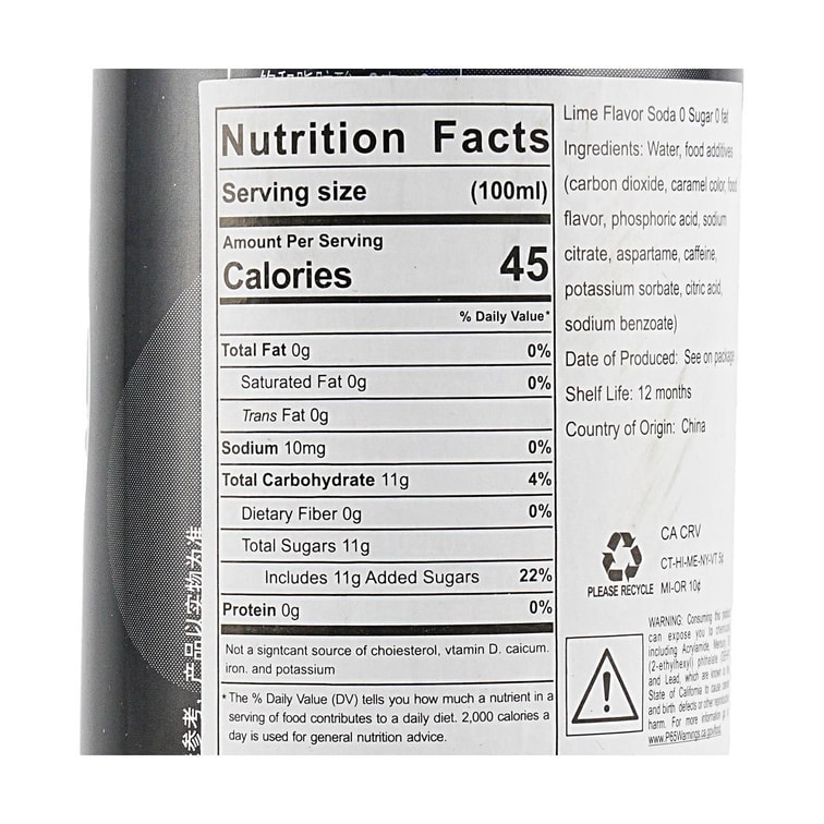 Sugar-Free Lime Flavor Soda Canned 10.14 fl oz
