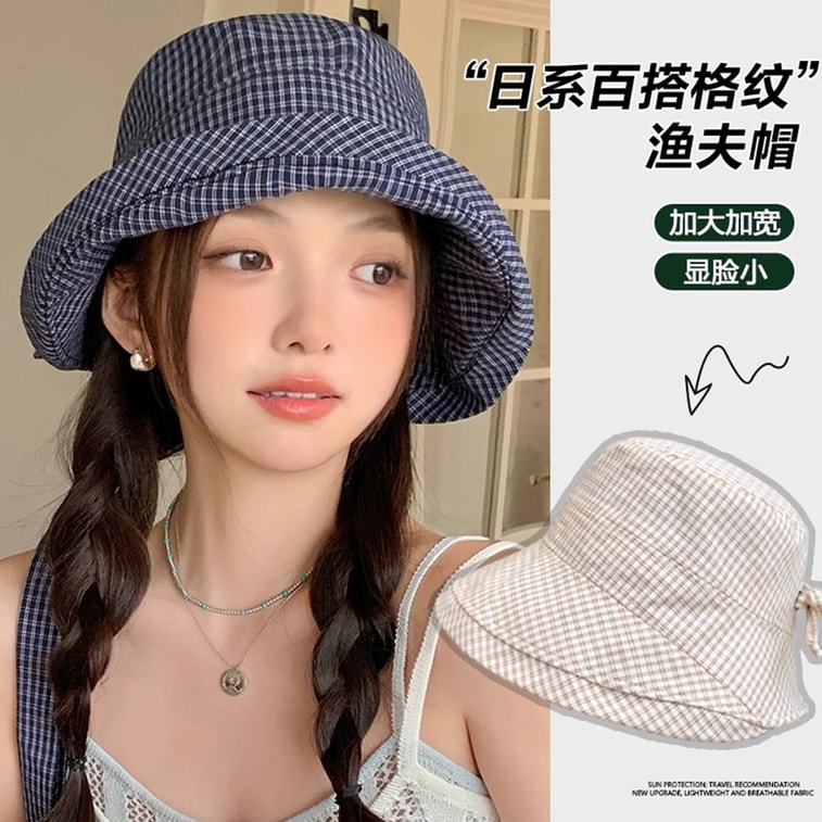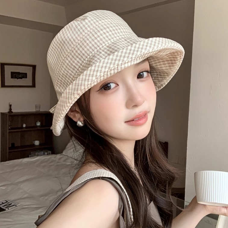 Sunscreen Fisherman Hat Korean Style Fashion Sun Hat Versatile Face Framing Bucket Hat Brown Plaid