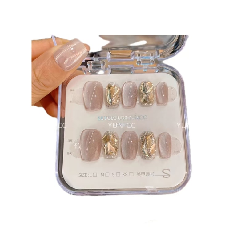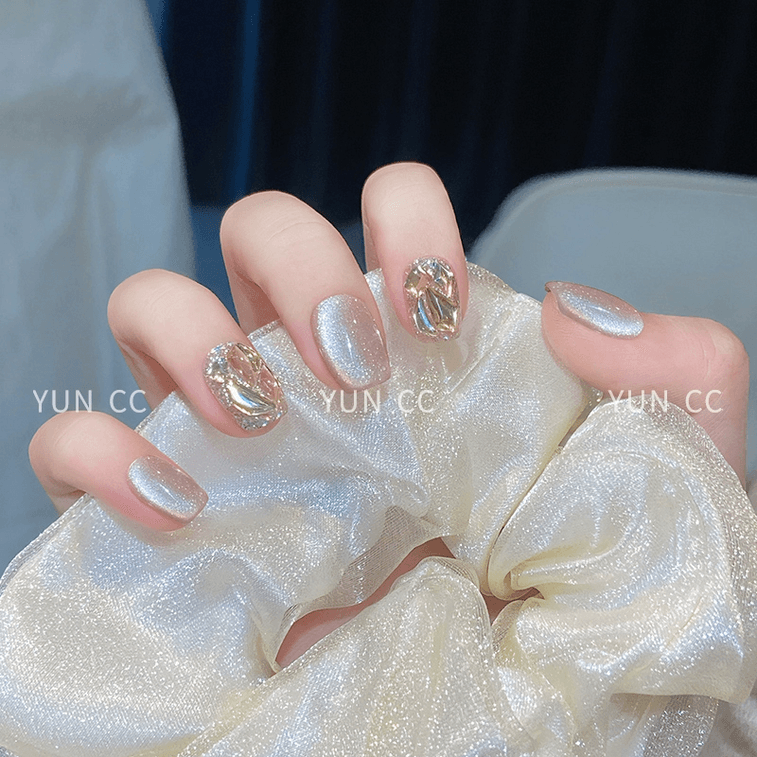 Sunset Molten Gold Handmade Nail Wear Nail Autumn And Winter Cat's Eye Short Nail Patch *1*M Model | Yami