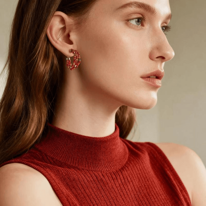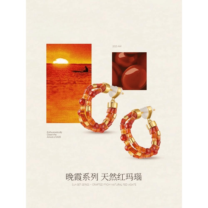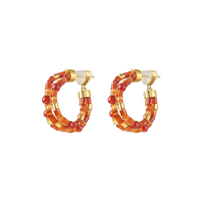 Sunset Red Agate Hoop Earrings*1piece