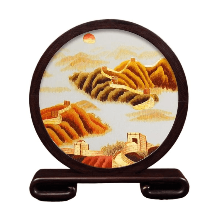 Suzhou Embroidery Handmade Silk Silk Thread Embroidery Craft Ornament Golden Great Wall 21.5 * 24 * 4.5cm