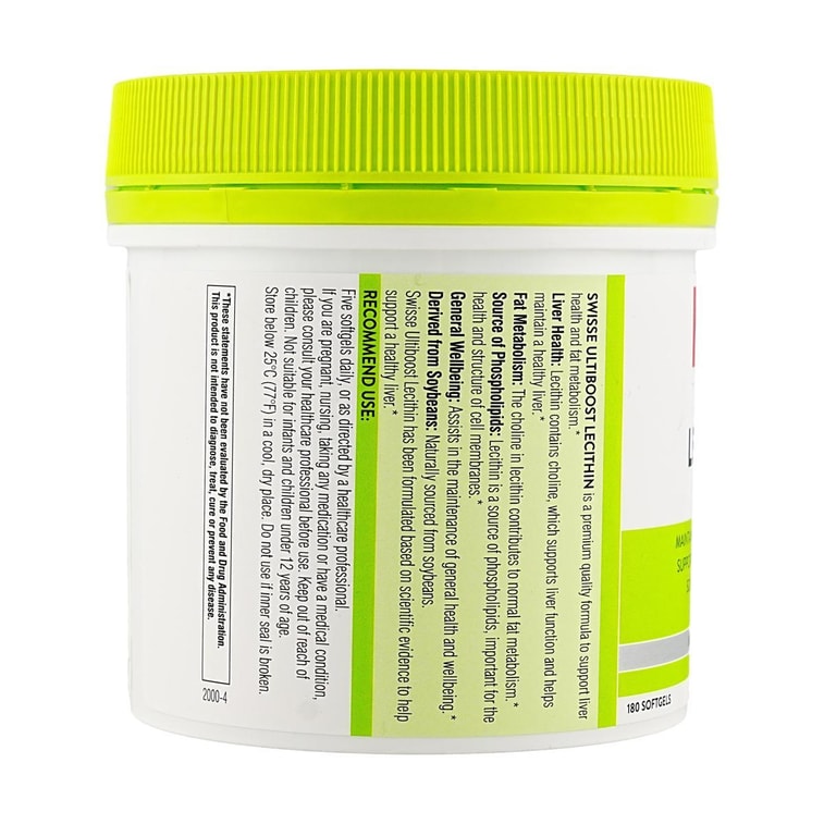 Swisse Ultiboost Lecithin, 180 Softgels - Liver Health | Fat Metabolism | Heart-Brain Vitality + Skin Nourishment | Yami