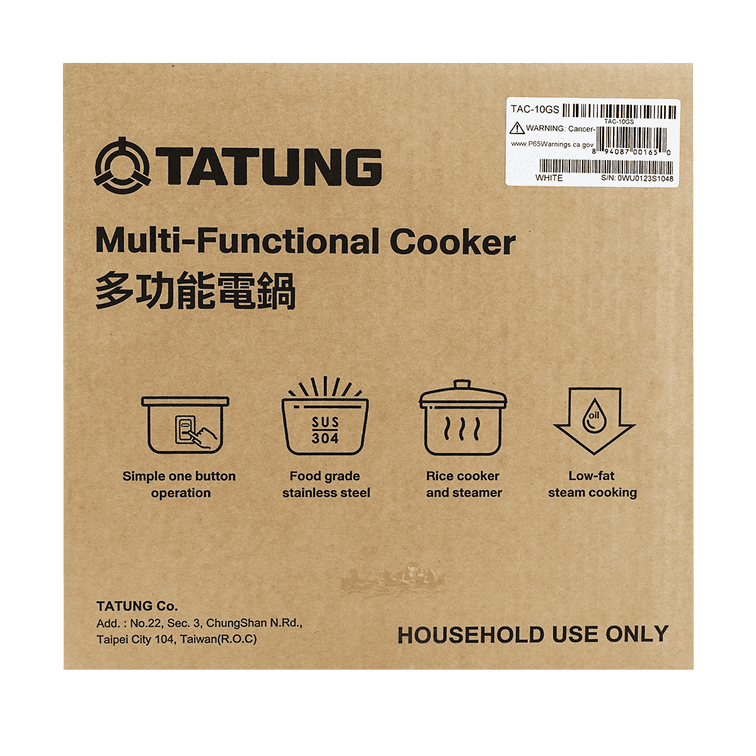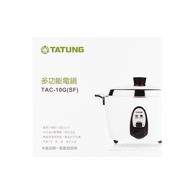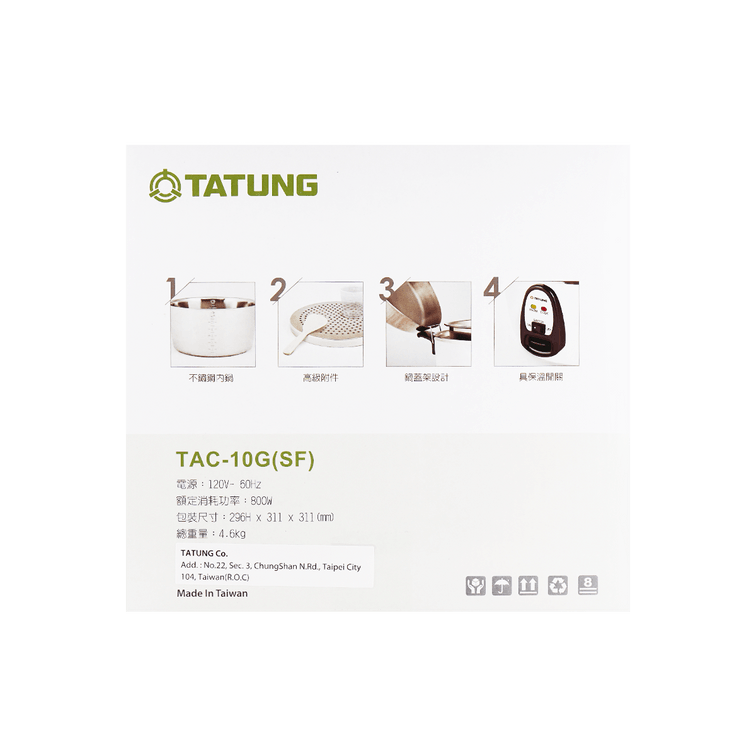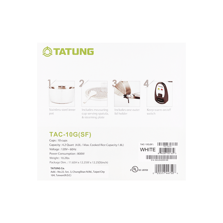 Pearl White Tatung Rice Cooker,withSteaming & Stewing Features, 10 Cup Capacity- Model TAC-10G (Aluminum Cook Pot)