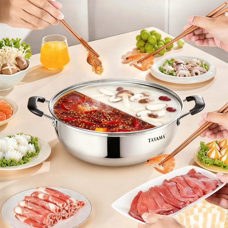 TAYAMA 11 inch Stainless Steel Dual Shabu Hot Pot with Divider 28cm TG-28CS