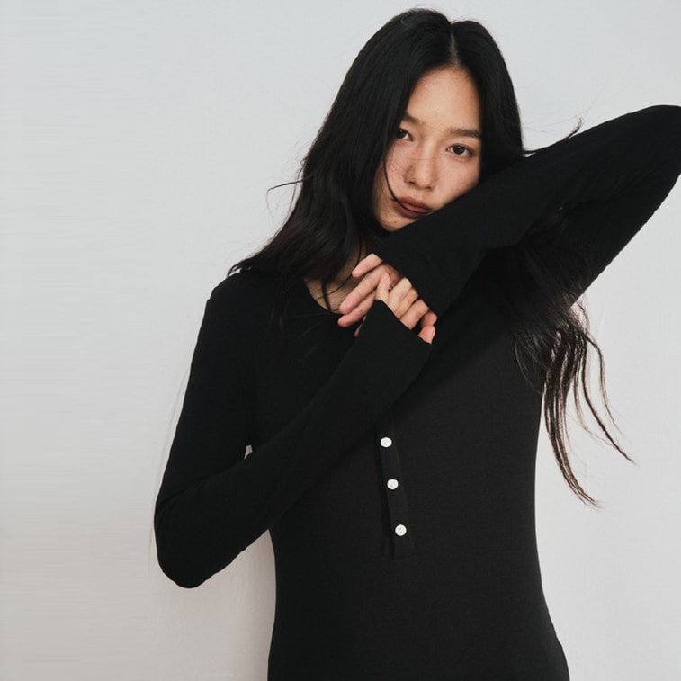 Tencel acetate wool base sweater women's autumn and winter new round neck slim fit knitted sweater solid color striped long sleeved top matte black M