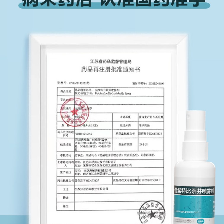 Terbinafine Hydrochloride Spray For Antipruritic Bactericidal Treatment Of Beriberi 20ML/ Box (CCTV Recommended Brand)
