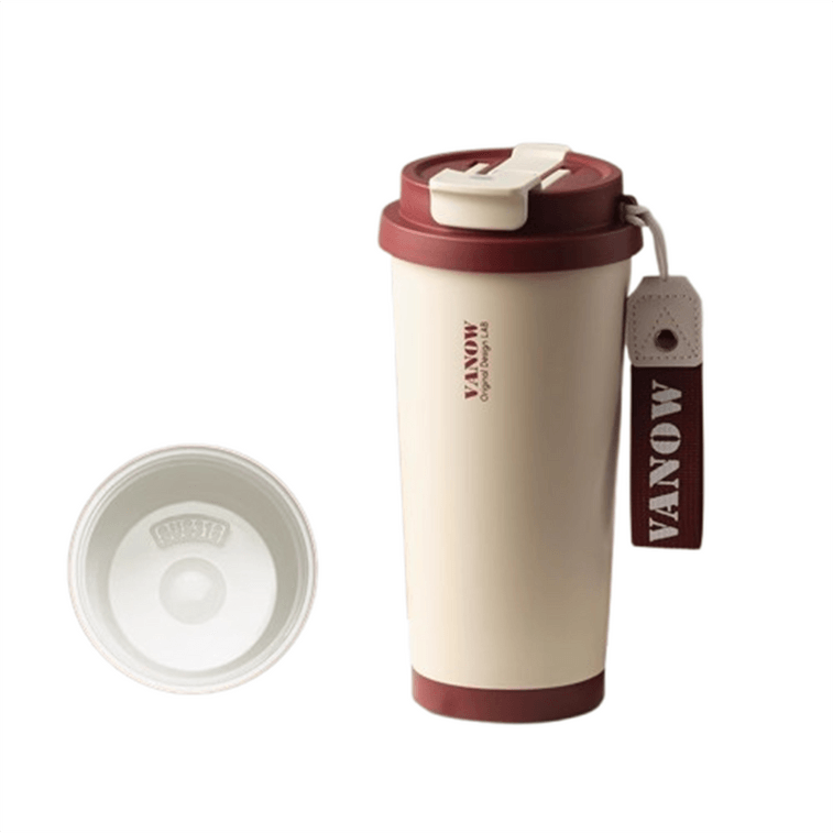 Thermal Insulation Cup Ceramic Liner Coffee Cup Female High Value With Straw Water Cup 2024 New Retro Red | Yami