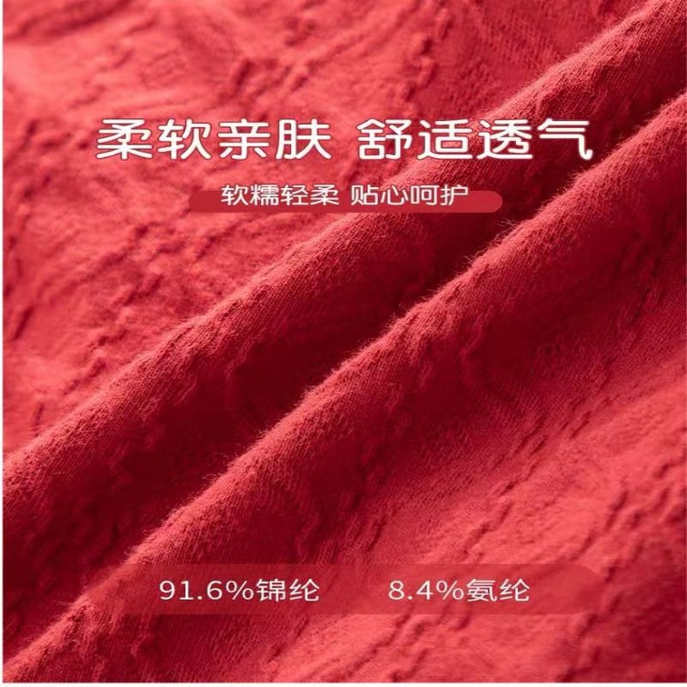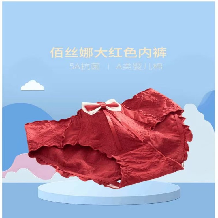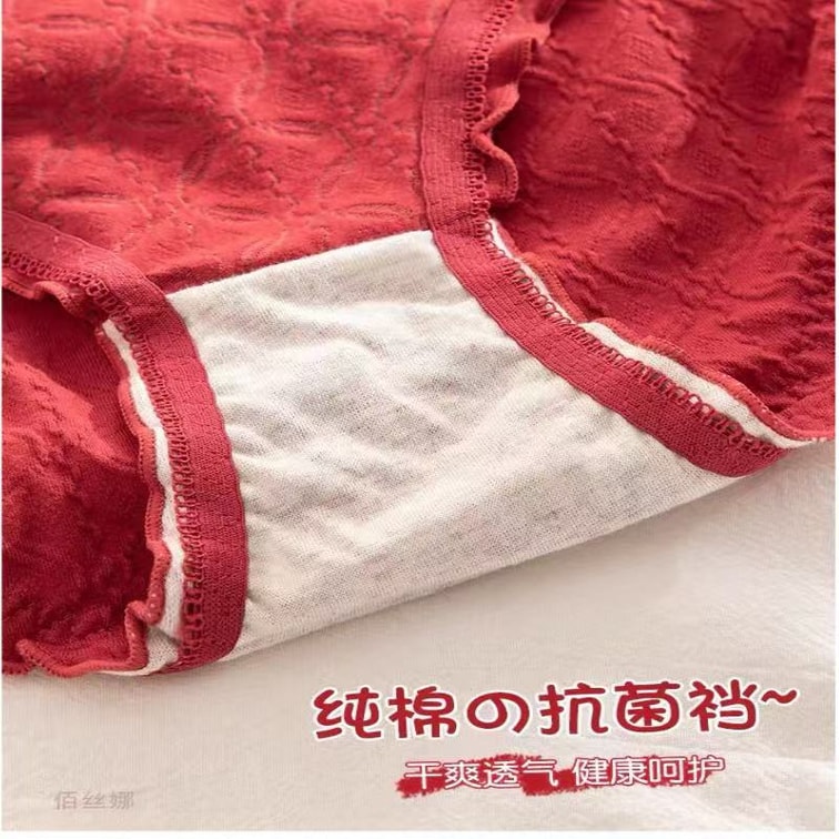 Pure Cotton Antibacterial Women's Mid-Waist Triangle Shorts (3-Pack, 90-130 lbs) - Red