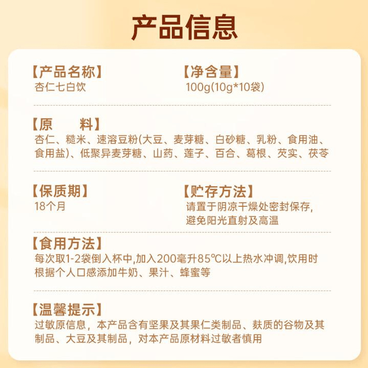 Tongrentang Almond Seven - white Drink Powder For Nutritional Meal Replacement 100g*1 Box