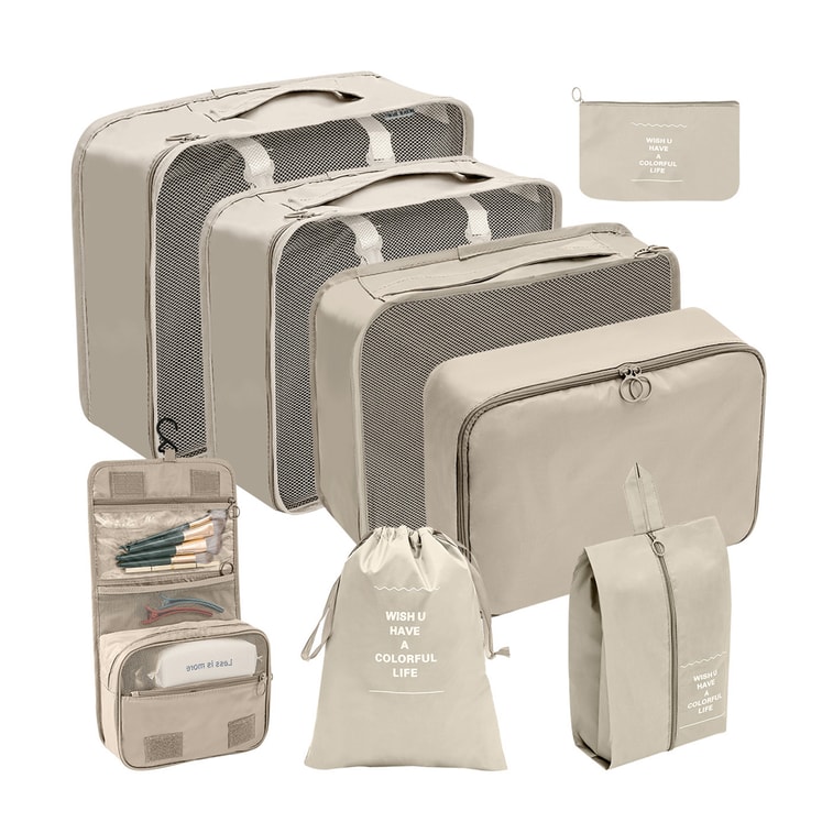 Travel Organizer Bag Toiletries Cosmetics Divided Storage Bag Clothes Shoes Luggage Travel Bag Beige