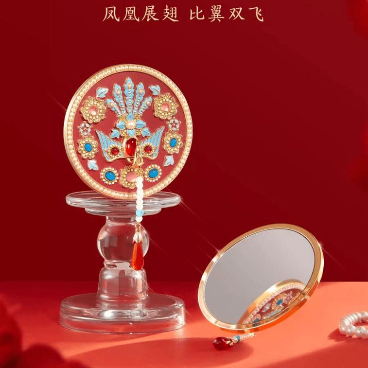 Treasure Phoenix Crown Mirror Gift Box, Innovative Wedding Item, Phoenix Crown Portable Mirror 14*14cm*1 Box