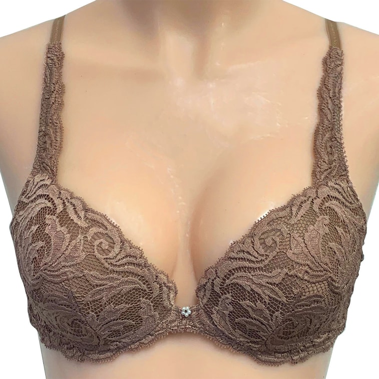¾ Lace Push-Up Bra Dark Brown A32 | Yami