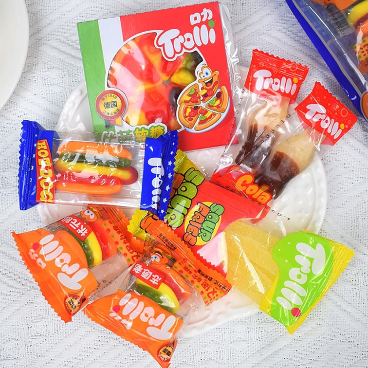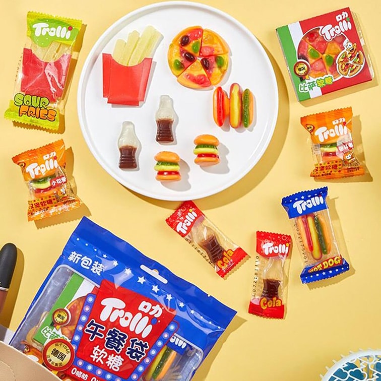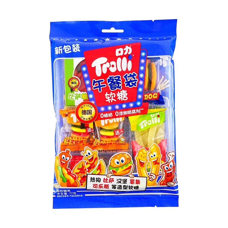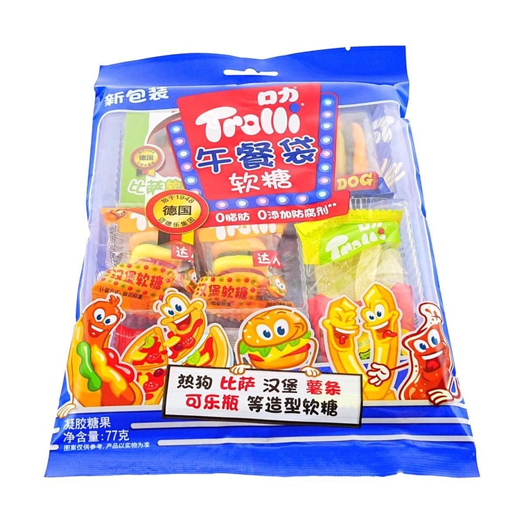 Trolli Lunch Bag Jelly Gummy Candy 2.72 oz【Hot Dog Pizza Hamburger French Fries Cola Shaped Candy】【0 Fat】