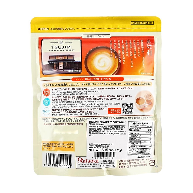 Tsujiri Hojicha Milk,Instant Roasted Green Tea Powder, 5.99 oz