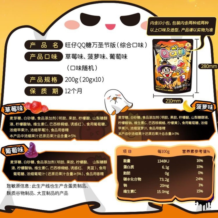 2025 Halloween Limited Edition Gummy QQ Candy 200g Mixed Flavors Children's Gift Juice Gummy Candy [Trick or Treat!]