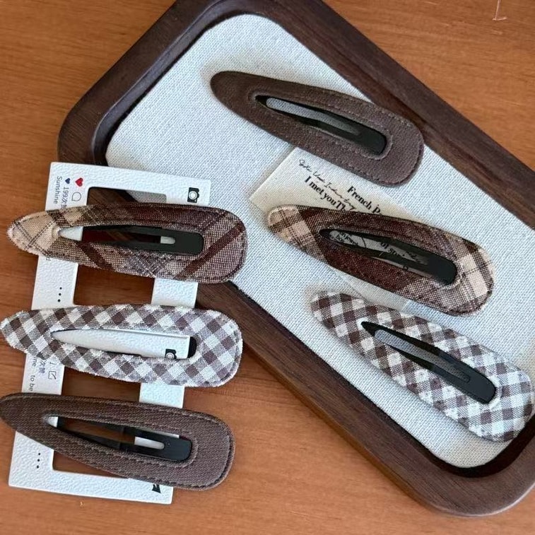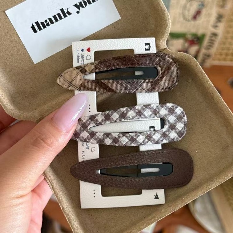 Fashionable Sweetheart Heart Color Plaid Fabric Drop BB Clip Simple and Versatile 3-Pack