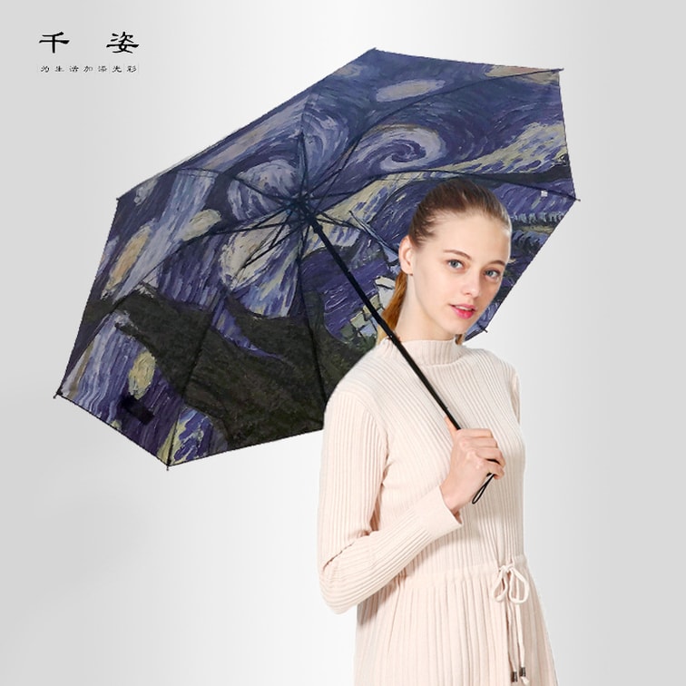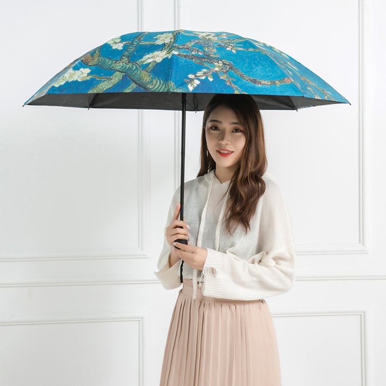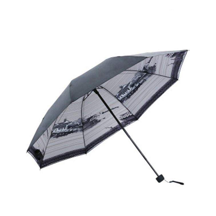 Umbrella Women Girls Sun Rain UV Protection Windproof Folding Compact Gray inside