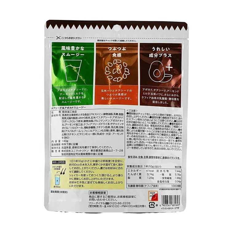 Chia Seed & Avocado Smoothie High Fiber Meal Replacement 14 Servings
