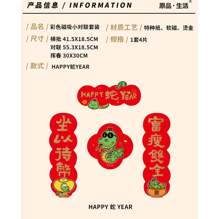 Upick Original Life Magnetic Adhesive Stickers For Doors,Colorful Magnetic Small Couplets For Snake Year, 1 Set | Yami
