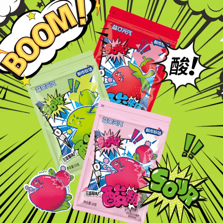 Urban Pasture Sour Candy Viral Weird Sour Candy Green Apple, Cranberry, Strawberry 18g*3 Bags