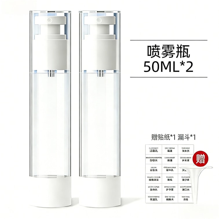 Vacuum-Sealed Refill Bottles 【Spray Bottles】50ml 2-Pack Cosmetics Travel Portable Pump-Style Foundation & Lotion Refill Bottles Includes Funnel + Labels