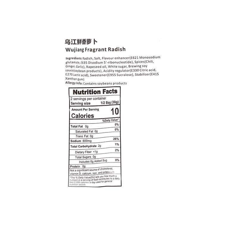 *Disclaimer:Nutrition info is based on product packaging and for reference only. Content may vary due to version, language, or image differences. Please check the actual package. For questions on ingredients, allergens, or suitability, read the label or contact support.