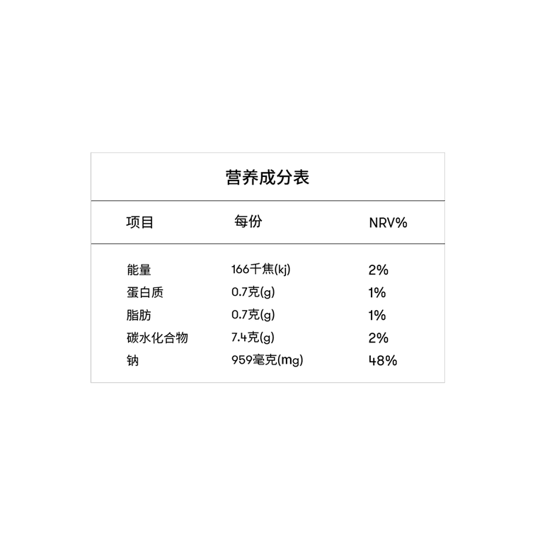 *Disclaimer:Nutrition info is based on product packaging and for reference only. Content may vary due to version, language, or image differences. Please check the actual package. For questions on ingredients, allergens, or suitability, read the label or contact support.