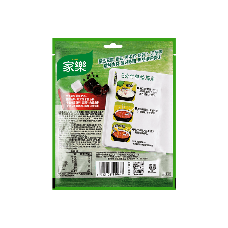 Hulatang, or Hot and Sour Soup, is a popular Chinese dish originating in the Henan province. Now you can enjoy it at home with ease thanks to these handy packs of Hot and Sour Soup with Black Pepper from Knorr. Each pack includes delicious ingredients such as tofu, mushrooms, carrots, onions, vinegar, and black pepper. The soup takes just minutes to prepare, and each pack serves up to 3 people.