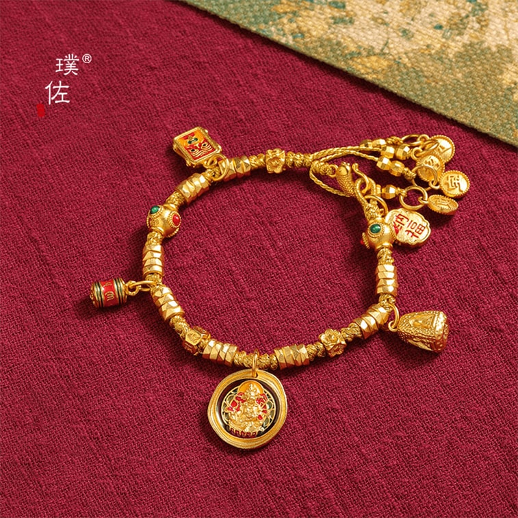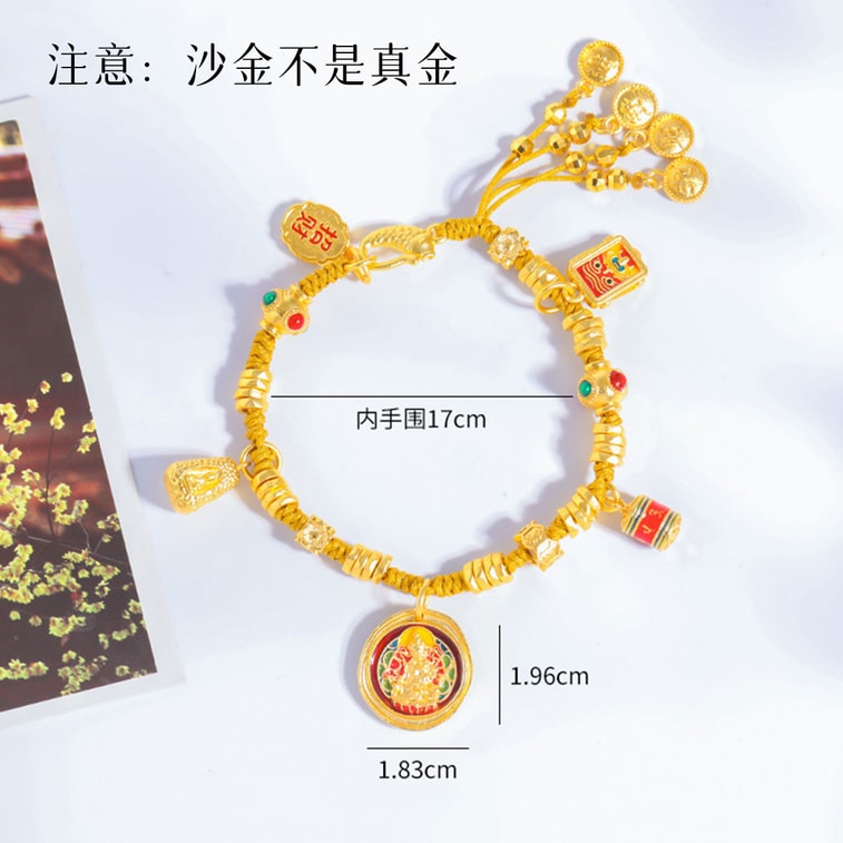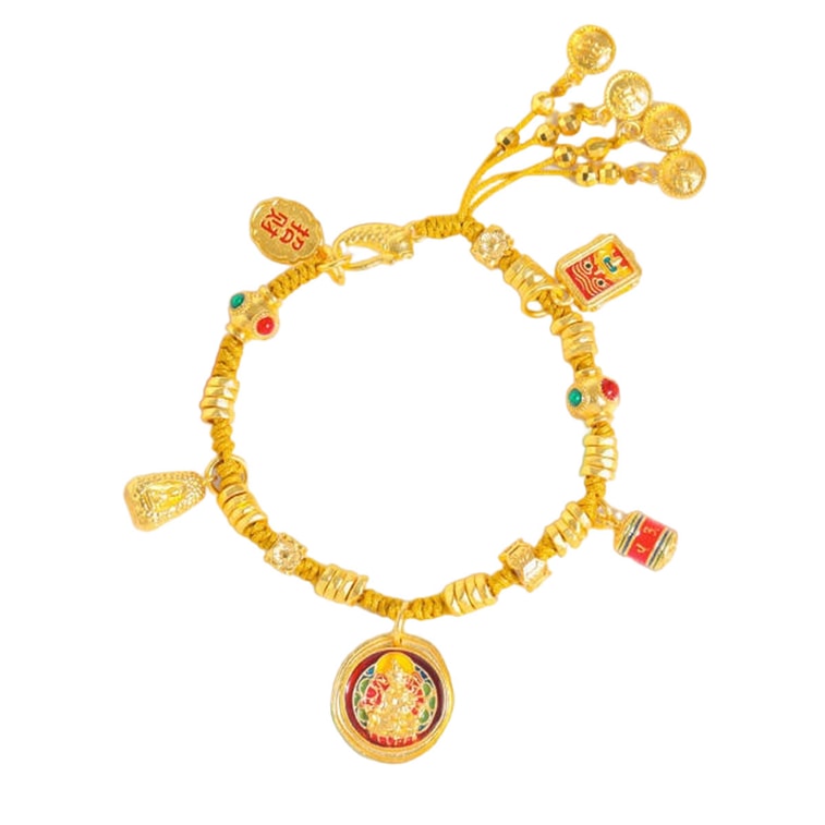 Vintage Cloisonne Zakiram Yellow God of Wealth Coiled Bracelet New Chinese Style Lucky Fortune Braided Beaded Bracelet 1 Piece
