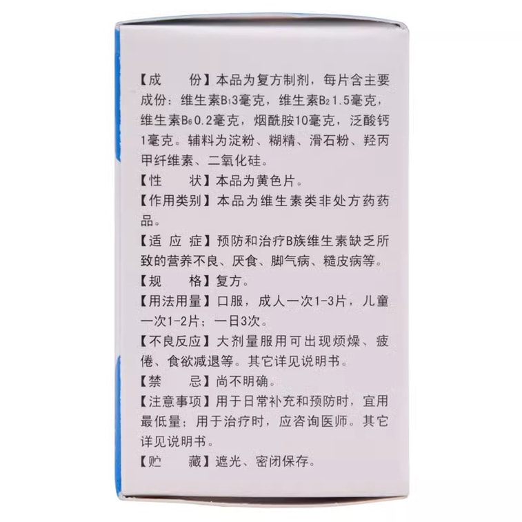 Vitamin B Complex Tablets For Anorexia Beriberi Indigestion Vitamin Deficiency 100 Tablets *1 Bottle/box