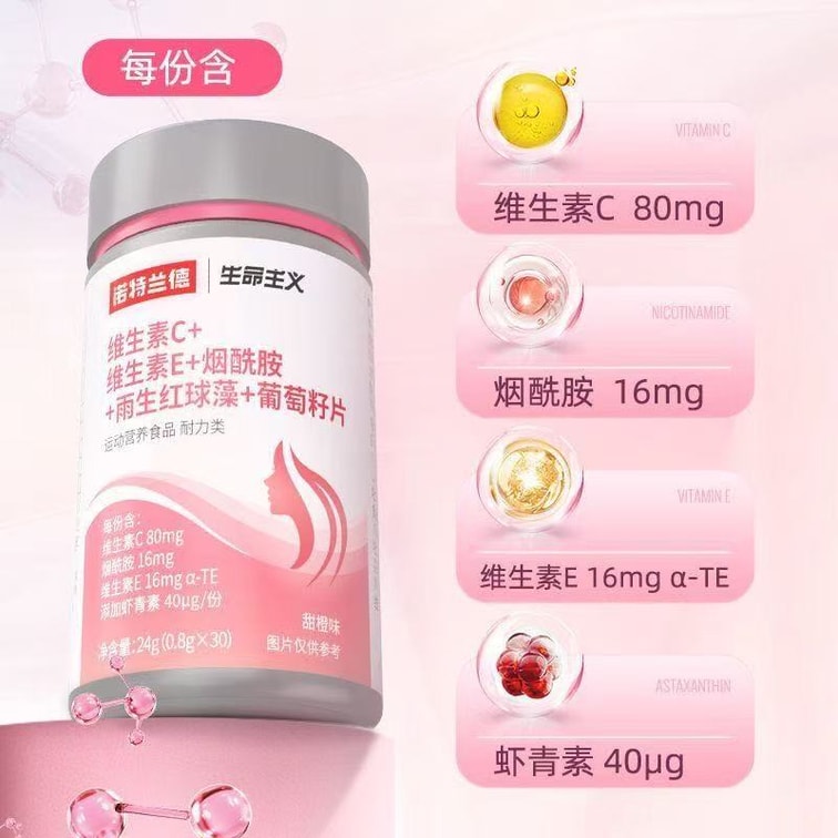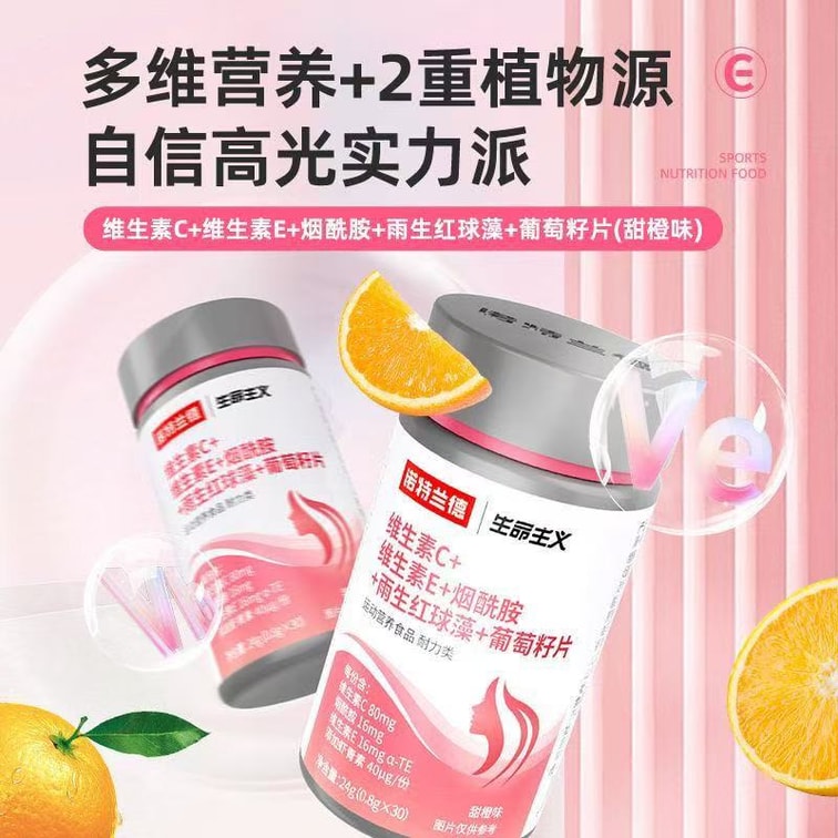 Vitamin C+ Vitamin E+ nicotinamide + Haematococcus pluvialis + Grape seed tablets 30 tablets per bottle
