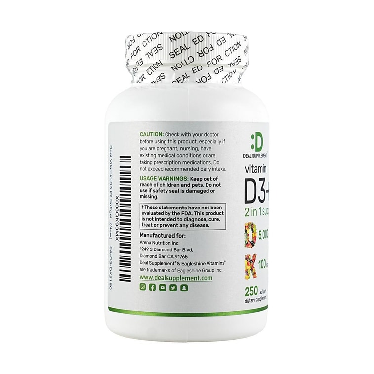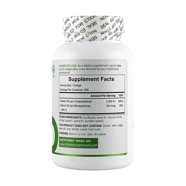 Vitamin D3 + K2 5000IU Softgel 250 Count