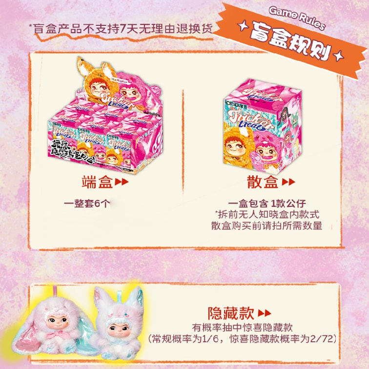 WAKUKU【Second Release: Rabbit & Fox Series】Blind Box Figurines and Plush Gifts - 6 Random Designs Whole Box