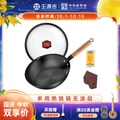 WANGYUANJI 2 IN 1 Carbon Steel Wok with Lid Flat Bottom Woks and Stir Fry Pans No Chemical Coated for All Stoves 28cm