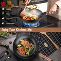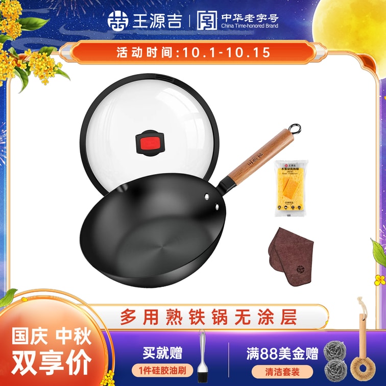 VERSATILE COOKING - WANGYUANJI Nitriding Carbon Steel Wok has a flat bottom design, with a detachable handle and glass lid. This wok is safe to use on gas stove. It is excellent for you to get ready to enjoy all sorts of Asian cooking tasks including stir-frying, searing meat, deep-frying, braising, and steaming.