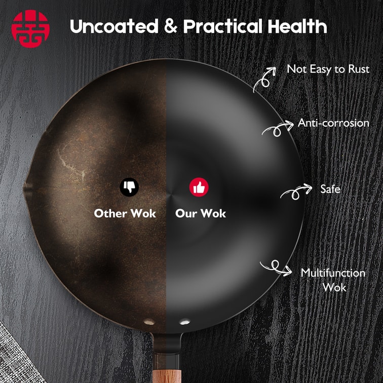 Calling out all the foodies and chefs, you can never have enough good woks, cast iron wok are not a hassle to use, perhaps you did not properly maintain the pot. Zero chemicals added to Wangyuanji's iron pots, to ensure health and safety when eating. Therefore a small amount of rust is expected if occurred, please clean and apply a tiny bit of edible oil after each use. Additionally, keeping the pots in a dry location will also reduce rust. Please be patient and repeat this process for about the month and you will be rewarded.