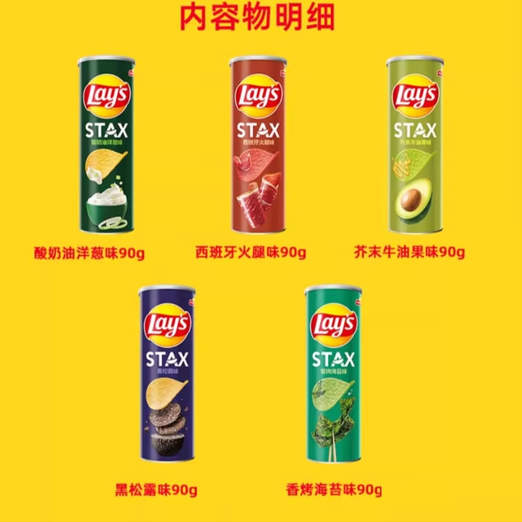 Lay's 90g*5 cans Black Truffle/Spanish Ham/Fragrant Roasted Seaweed/Sour Cream Onion/Mustard Avocado Flavor