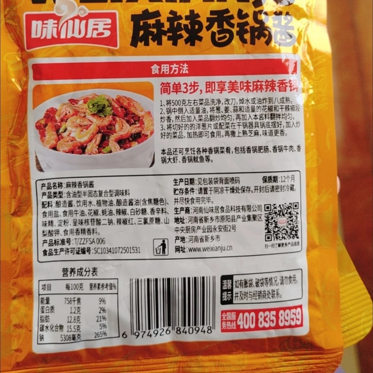 Weixianju Spicy Hot Pot 1 bag 50g Home-use Dry Pot Sauce Spicy Hot Pot Seasoning Mala Dry Pot Condiment